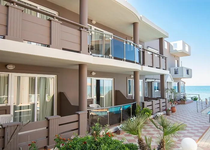 3つ星Girogiali Beach Hotel - Adults Only ハニアはAgia Marina Beachから徒歩で5分に位置し、モダンなアメニティーを備えた16室の客室があります。 フランチェスコ会・アギオス・フラギスコス修道院から4.6kmのモダンなホテルはインフィニティプールを提供しています。